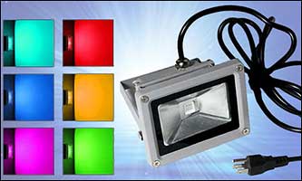 RGB color changeable flood lights bathe the inside or outside of structures in your select color scheme. From 75-WIE indoor drape or wall floods, to 300 WIE landscape flood and 500 W building light projectors, this lighting can provide the special ambiance you are wanting. Whisper generators and battery packs are available where power may be a problem.