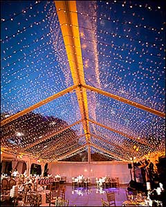 LED MINI BULBS are one of the most unique and beautiful lighting options. Due to the labor required, it is one of the more expensive choices. But for a once in a lifetime event this lighting definitely gives an awesome impact. Strands are typically installed either 1, 2 or 3 feet apart however any option or design can be created so your vision is realized. Amerevent's newest mini-light system is pre- installed in 2-ft width. Using dimmable bulbs with multiple pre-programmed effects for twinkle, starlight and motion effects. |